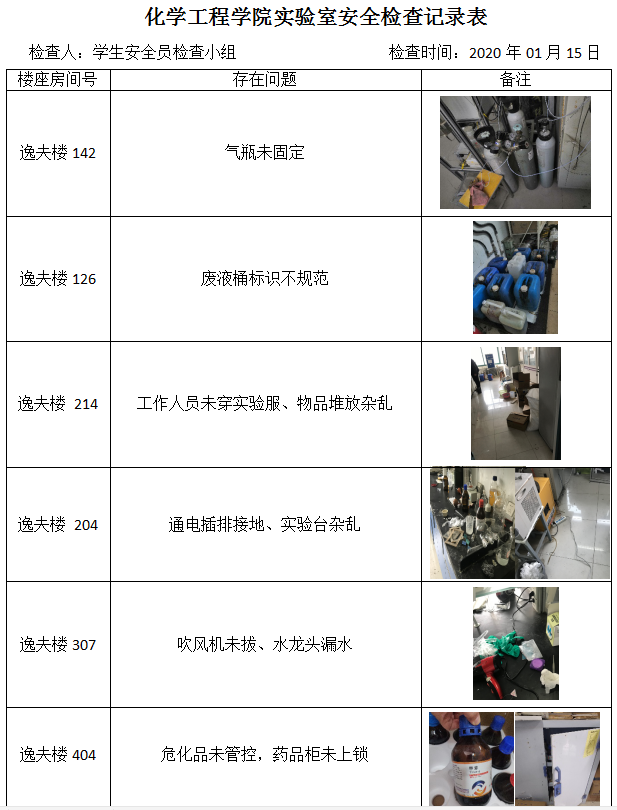 1月15日-1月16日,公司员工安全员对化工学院科研实验室进行安全大检查。通过检查实验室,公司实验室安全建设大有改观,安全隐患大大减少,但是检查中个别实验室仍有部分隐患,针对出现的重点安全隐患,安全员队伍也与实验室工作人员及时沟通,监督立即整改。
