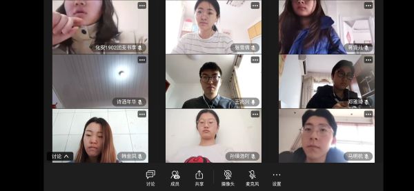 随后,王兆兴对目前在线学习状况及上学期成绩进行分析。他指出,线上学习不同于在校学习,遇到问题要及时解决。他督促并要求员工认真高效的开展线上学习,规划好时间。同时,他对上学期成绩做出总结,要求各班邀请班主任、班导师开展线上成绩分析总结会,进一步加强班级学风建设。会议最后,辅导员与各班员工干部进行了热烈地讨论。孙瑛浩、段佳依、郑雅琦等就团支部推优工作、近期防控工作提出问题,辅导员一一进行解答。