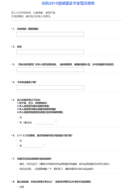 摸底调查解难题。开学首日,2018级便召开班长团支书线上例会,针对新学期第一天的线上学习情况,辅导员与各班班长支书进行了热烈地讨论,与会同学积极发言献策,反馈问题;同时,定期发放网上调查问卷,了解同学们在在线学习中遇到的困难,发现问题及时研究、及时处理,竭尽全力为同学们服好务,提升授课效果。