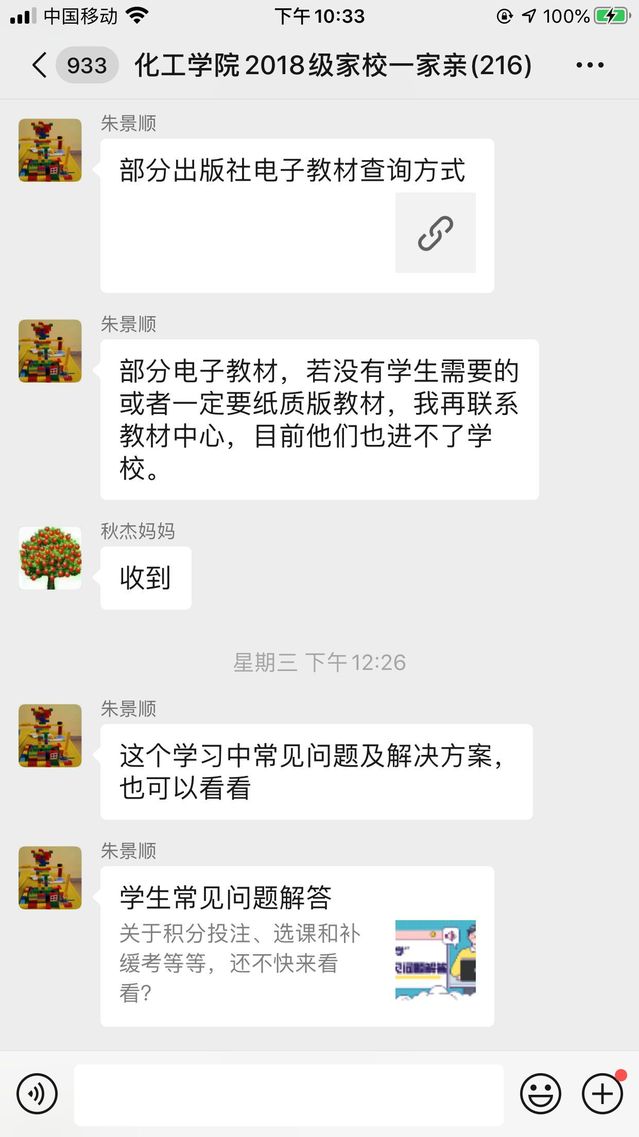 家校合作促教育。辅导员积极通过QQ群、微信群、电话等方式与员工家长进行沟通联系,传达学校关于线上教育的各项通知及要求,搞好“家校教育大合唱”,让家长更多地参与到课堂监督上来,保证员工居家上课效果和听课质量。