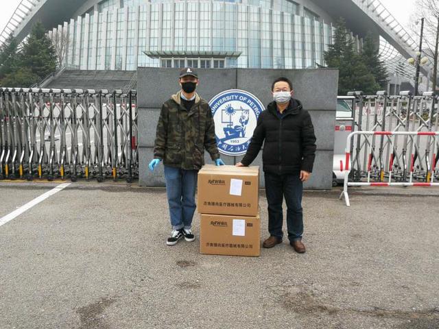 3月1日,青岛腾翔仪器设备有限公司向学院捐赠75%酒精消毒液2箱,用于学院疫情防控工作。学院化学工程实验教学中心主任李传代表学院接受捐赠。