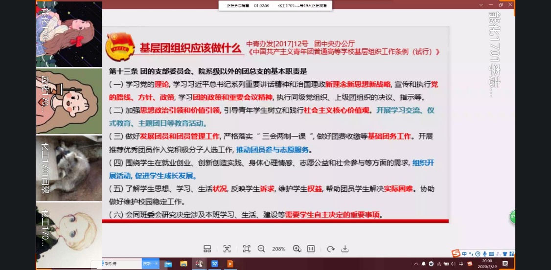 通过此次线上会议的举办,各团支书明确了下一阶段工作的方向,也提升了工作能力,为今后的团支部活力建设和其他各项工作的开展奠定了良好的基础。