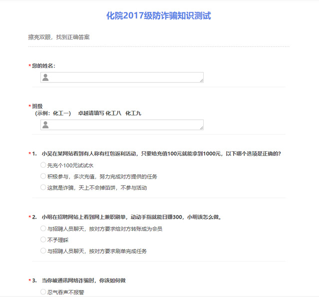 进行防诈骗知识测试