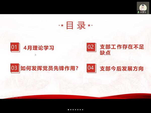 最后,买里旦进行了总结并对支部内党员提出要求,要不断地发现自身的不足并改进,在发挥党员先锋作用的同时提升工作能力,做一名合格的党员。