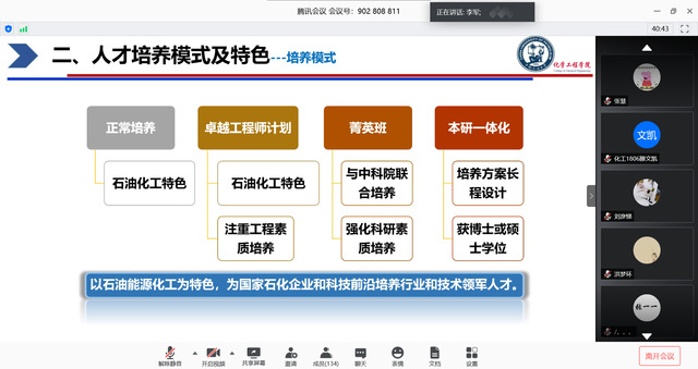 为帮助员工增强对化学工程与工艺专业方向及发展前景的认识,了解专业卓越班、菁英班选拔条件,5月14日上午,2018级邀请化学工程系副教授李军开展教授导学日线上活动。会议由辅导员刘伟主持,辅导员朱景顺、秦政及2018级化工专业员工参加。