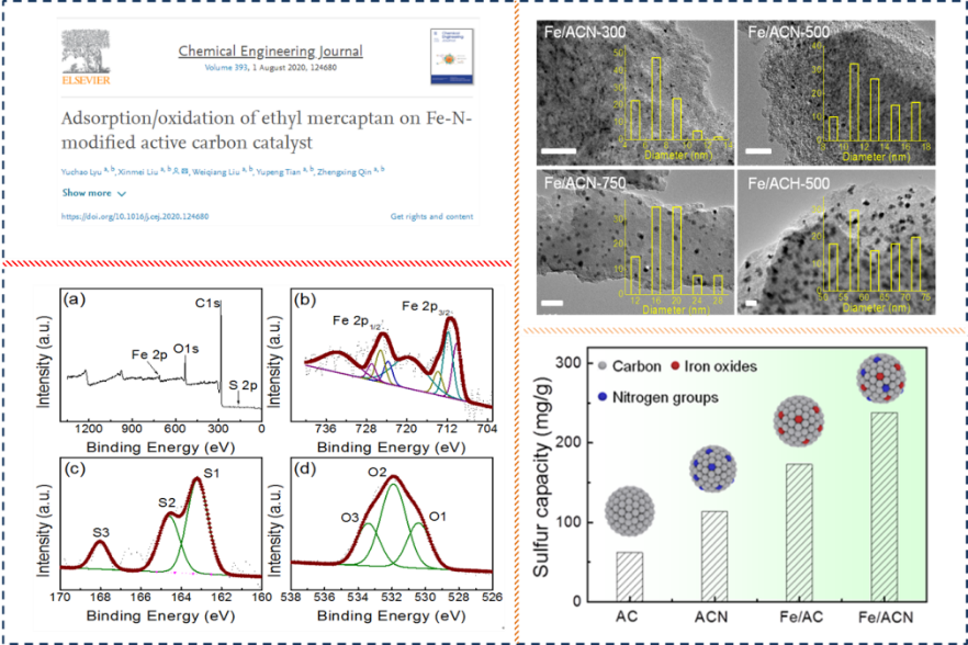 题为《乙硫醇在新型Fe-N改性活性炭催化剂上的吸附/氧化》(Adsorption/oxidation of ethyl mercaptan on Fe-N-modified active carbon catalyst)的论文发表在Chemical Engineering Journal上。公司博士毕业生吕玉超为该论文第一作者,刘欣梅教授为通讯作者。该项工作得到国家自然科学基金、山东省自然科学基金和山东省重点研发计划等基金的资助与支持。