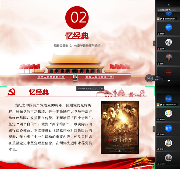 观看一部红色影视剧。公司各党支部通过组织观看《周恩来回延安》《中国1921》等党史题材影片,进一步激励广大师生党员以实际行动践行初心使命。工业催化第二员工党支部通过观看影片《我和我的祖国》,支部党员纷纷表示将继承和发扬党的优良传统。