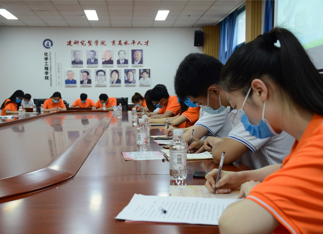 开展重温入党誓词活动。化学工程系师生党员在毕业生座谈会上共同重温入党誓词,期望同学们在新的学习、工作岗位上积极进取,奋发有为。
