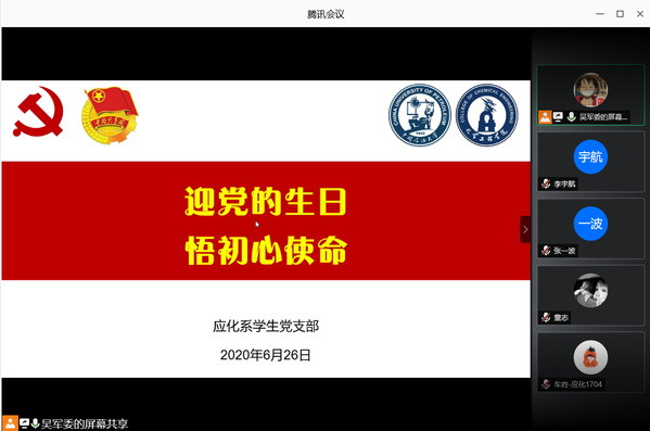 建党99周年来临之际,为回顾党的光辉历程,讴歌党的丰功伟绩,应化系员工党支部开展“迎党的生日 悟初心使命”系列线上组织生活。