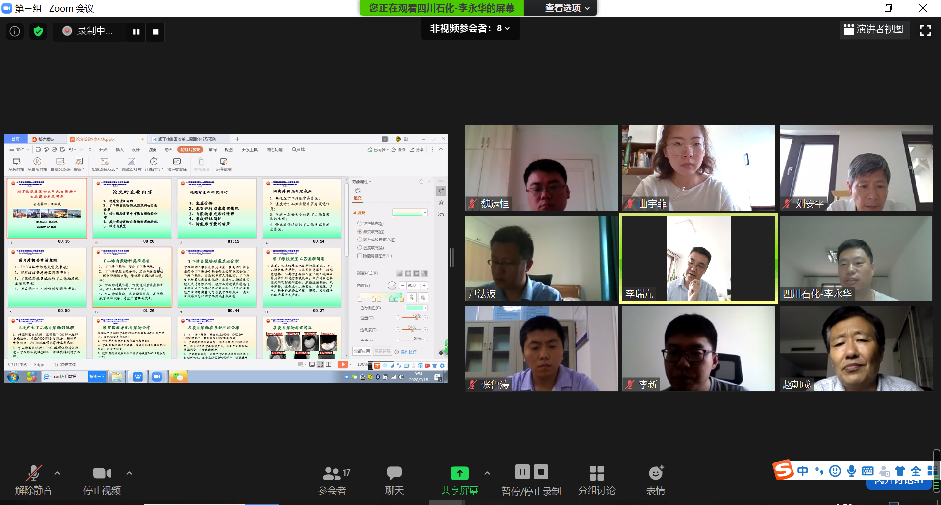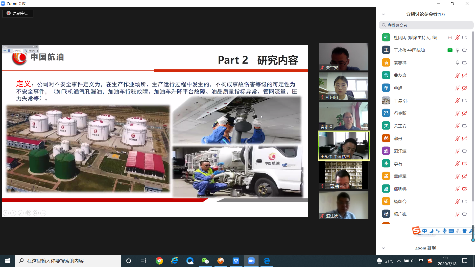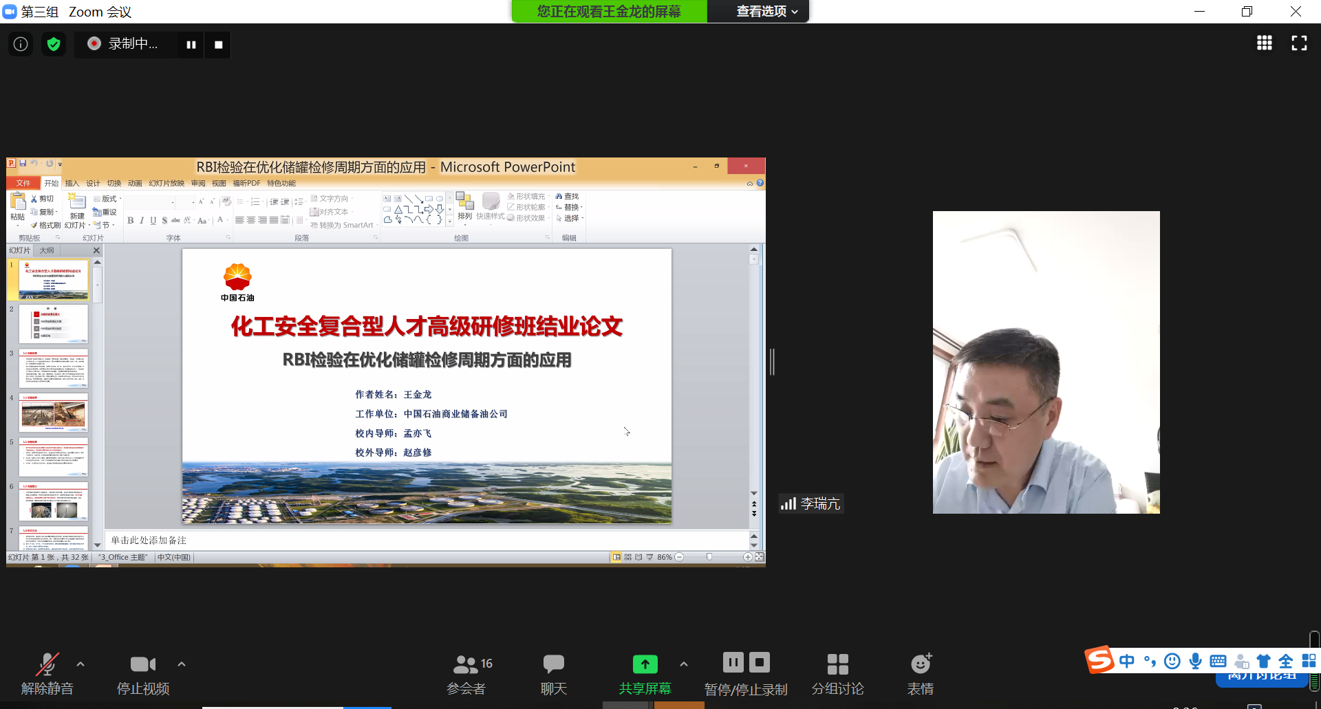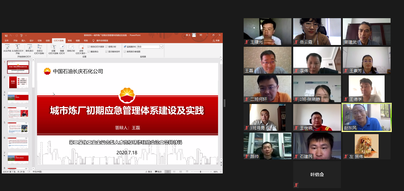 7月18日上午,威廉希尔体育(华东)第二届化工安全复合型人才高级研修班线上答辩工作顺利开展。来自中石油、中石化、中国化工、万华化学等送培企业的专家和校内导师团共同组成此次答辩专家委员会。化学工程学院经理暨安全监管监察学院(青岛)经理杨朝合、安全监管监察学院(青岛)专家委员会主任赵东风、赵朝成教授和刘义副经理分别担任四个答辩专家组组长。