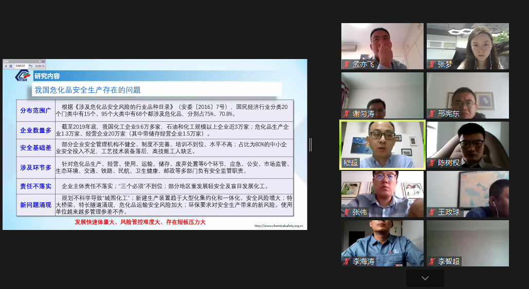 本次共有来自政府应急管理系统,中石油、中石化、中海油、中国化工、中化集团、万华化学等各大企业、设计院和咨询机构的48名学员参加首批答辩。前期论文指导过程采取企业和高校双导师制,将理论与实践相结合,从基本概念的夯实、基础理论的构建、到系统专业的学习,强化了学员的化工安全意识,使其现有工作经验相结合,针对某一课题展开深入研究,实现发现问题、分析问题和解决问题的能力培养。