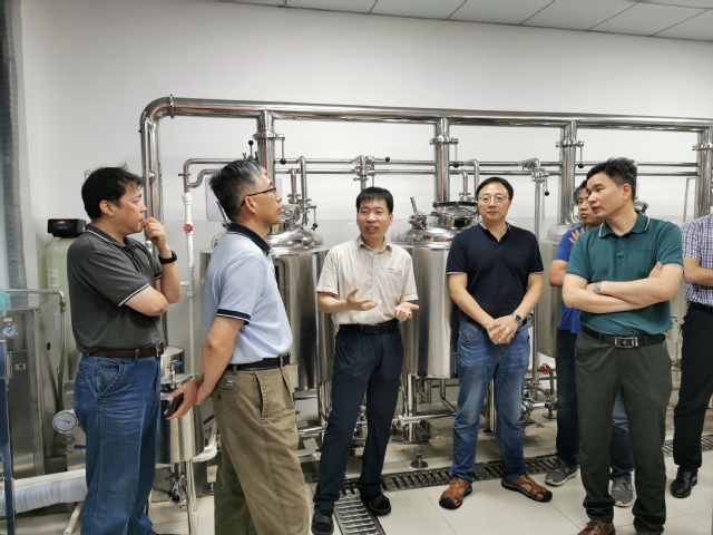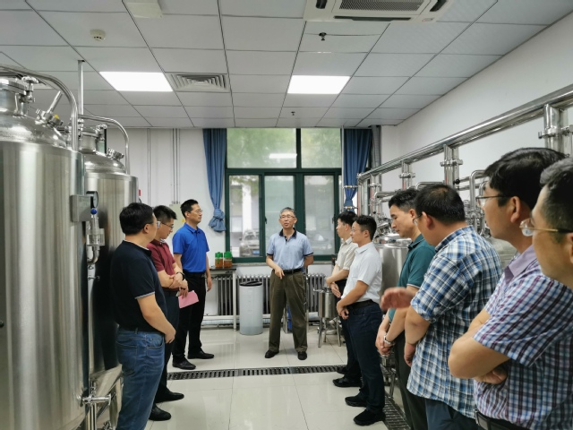 验收会上,肖梓军教授带领领导专家参观了厌氧发酵(啤酒)装置,并以啤酒发酵为例介绍了整套装置运行的工艺流程。肖梓军教授指出,厌氧发酵是生物化工领域重要的工艺流程,厌氧发酵(啤酒)装置的安装为完善能源化学工程专业实践教学环节提供了重要保证。