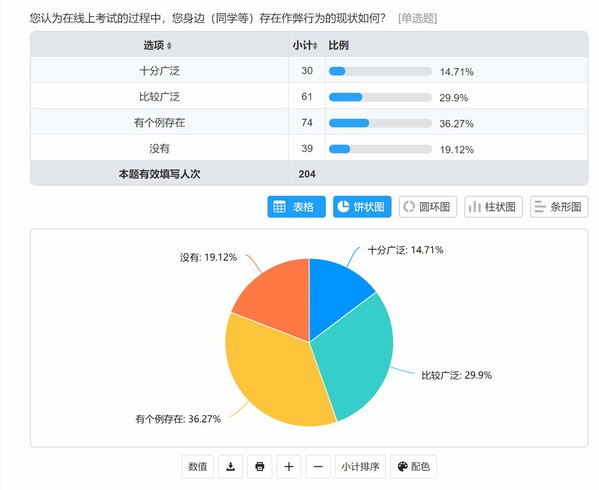 调查问卷中关于线上教育作弊情况的调查(部分)