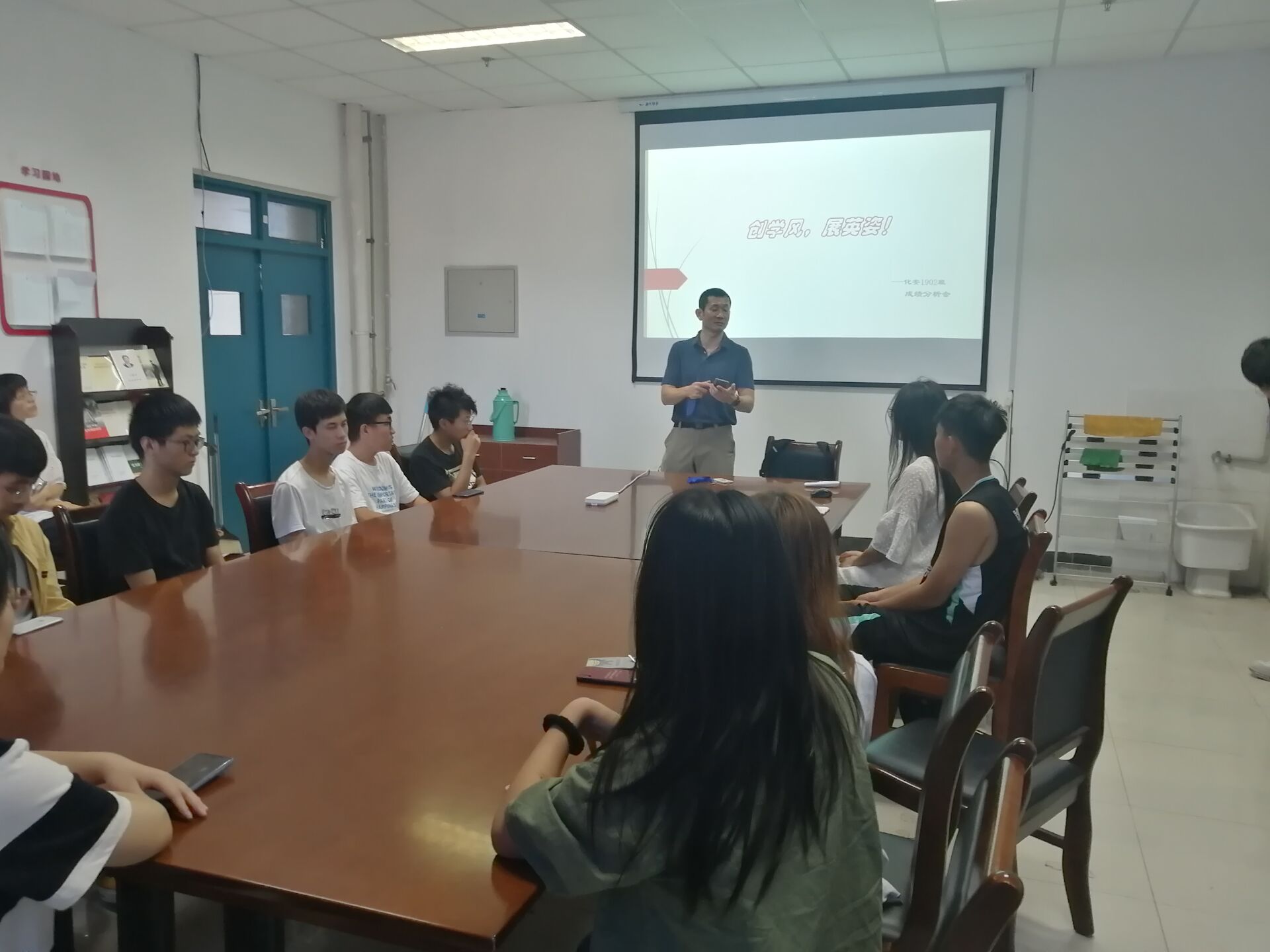 化工1801班班主任陈爽老师、班导师刘宾老师参与班会合影