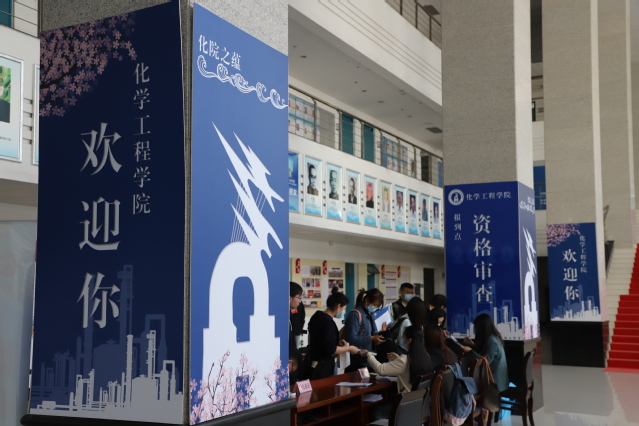 公司继续以“我在化院有个家”为主题,精心设计、布置学院迎新点。长9米、高3米的巨大蓝色背景墙矗立在工科楼A座门口,醒目的设计可以使新生快速找到学院。门外设有两顶帐篷,蒲公英党员先锋队的志愿者在那里负责迎接指引新生,帮助他们照看行李。“热情的小话梅”在门口指引新生前往大厅报道。走进大厅,依次设有优秀员工代表展、学院研究生员工组织展示介绍、优秀研究生代表风采展、研究生代表成果展等,新生们纷纷驻足观看。学院开辟了“绿色通道”,让家庭经济困难的员工可以顺利报到。报到流程分为今日校园扫码签到、入学资格审查、签署安全责任告知书、领取一卡通及相关材料等,报到结束后,新生来到“乘风破浪”主题合影墙面前拍摄入学纪念卡。