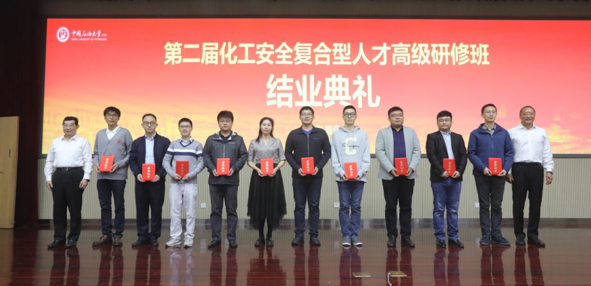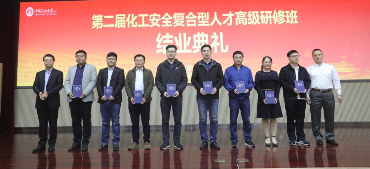 中国石油大学(华东)党委副书记、副董事长刘华东代表学校介绍了学校的发展历程和取得的成就,感谢大家多年来对学校人才培养工作的大力支持;威廉希尔体育(华东)化学工程学院经理、安全监管监察学院(青岛)经理杨朝合教授代表学校宣读授予学员结业证书、优秀毕业论文和优秀学员称号的决定,国务院安委办副主任王浩水同志亲自为优秀学员颁发结业及荣誉证书。