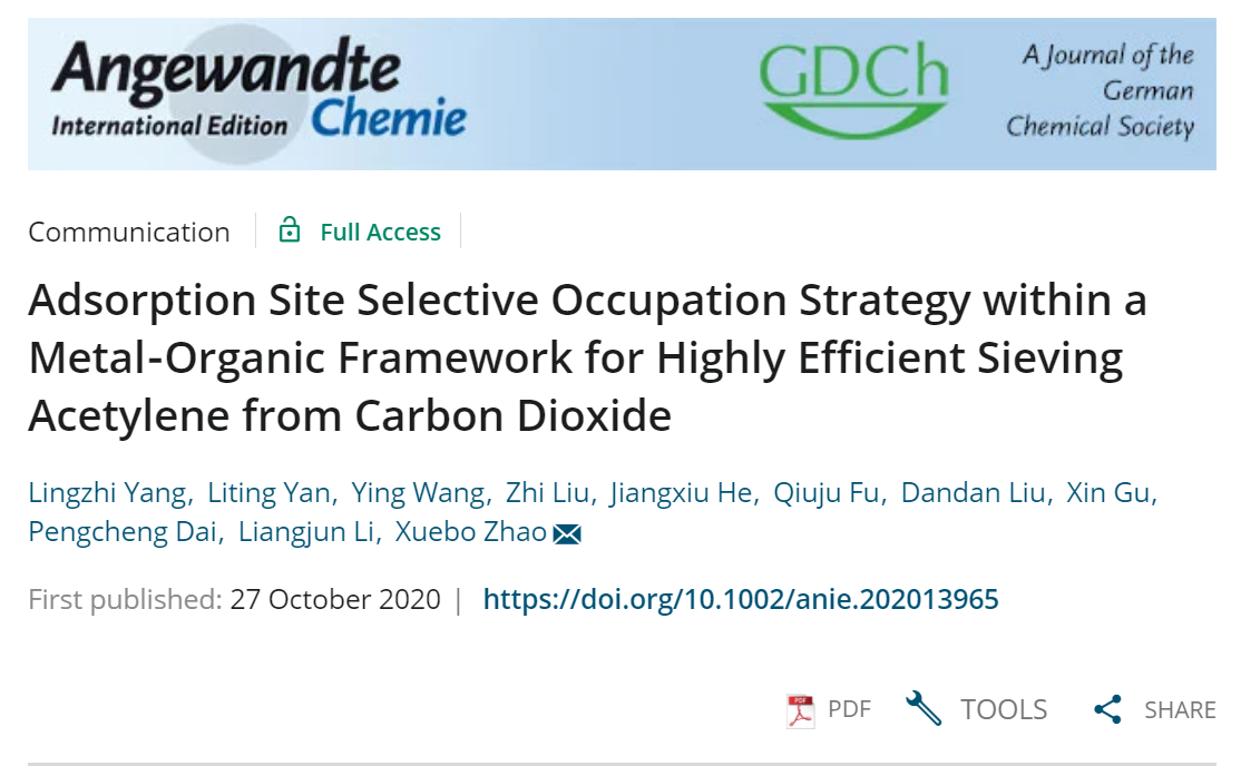 该项研究成果获得审稿专家充分肯定,审稿专家一致认为该工作报道的吸附位点选择性占据方法为实现混合气体的高效分离提供了一种新策略。
