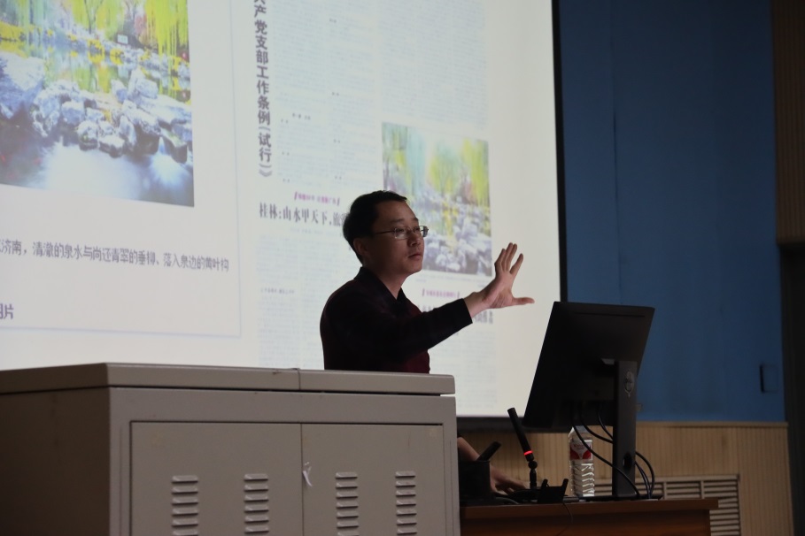 活动伊始,刘积舜以习近平总书记强调的融媒体为大背景,介绍当今新时代青年员工所必需的媒介素养——能写、会拍、懂网。刘积舜以一篇无实质性内容的新闻稿为例,向在场员工介绍新闻稿的写作要点,并以他在朋友圈看到的一段断章取义的视频作为切入点,强调道:“新闻宣传的核心任务是传递信息。新闻不是用来表达个人观点的,确保真实性尤为重要。写一篇让读者认可的稿子,讲故事远比道理更有效。”随后,刘积舜通过分享自身的摄影经历向员工传授拍摄技巧,鼓励青年员工拿起手机相机自主摄影,主动参与新闻传播工作。在谈及当今网络媒体高速发展时,刘积舜用自己的亲身经历向员工解释网络舆情的复杂性和当今网络意识形态的发展。培训的最后,刘积舜以“激情是人生的催化剂,将赋予你的生活和生命更多的色彩”作为结语激励全体参会人员。