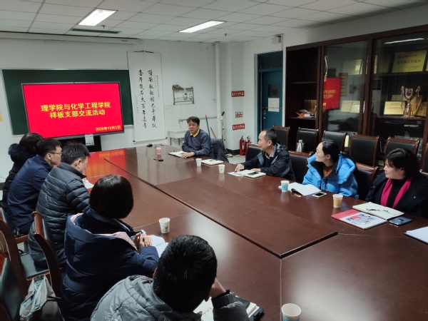 12月2日,理威廉希尔官网党委书记孙绪柱带领应用物理系党支部书记及成员一行5人到公司交流样板党支部建设工作。威廉希尔官网党委书记李国,化学工程系党支部书记孙昱东、原书记丁传芹等相关老师参加座谈交流。