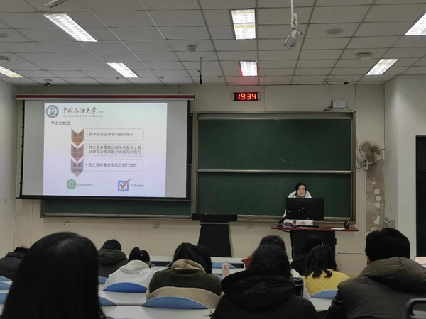首先由化学工程与技术专业的代静柔师姐围绕本次活动主题“论文写作”揭开了交流会的序章。师姐从自己的研究方向出发,详细的介绍了自己第一次阅读文献时的困惑,并列举了自己的解决方法,例如如何去找到自己需要的文献然后如何去下载这些文献,师姐耐心地讲解了在阅读外文文献时遇到一些读不懂的内容是十分正常的,然后师姐在论文选题还有资料准备上都给予了十分中肯的见解,让大家觉得写好文章原来也不是那么困难,师姐还非常热心的向同学们推荐了自己在写文章时用到的一些网站和软件,同学们获益匪浅。