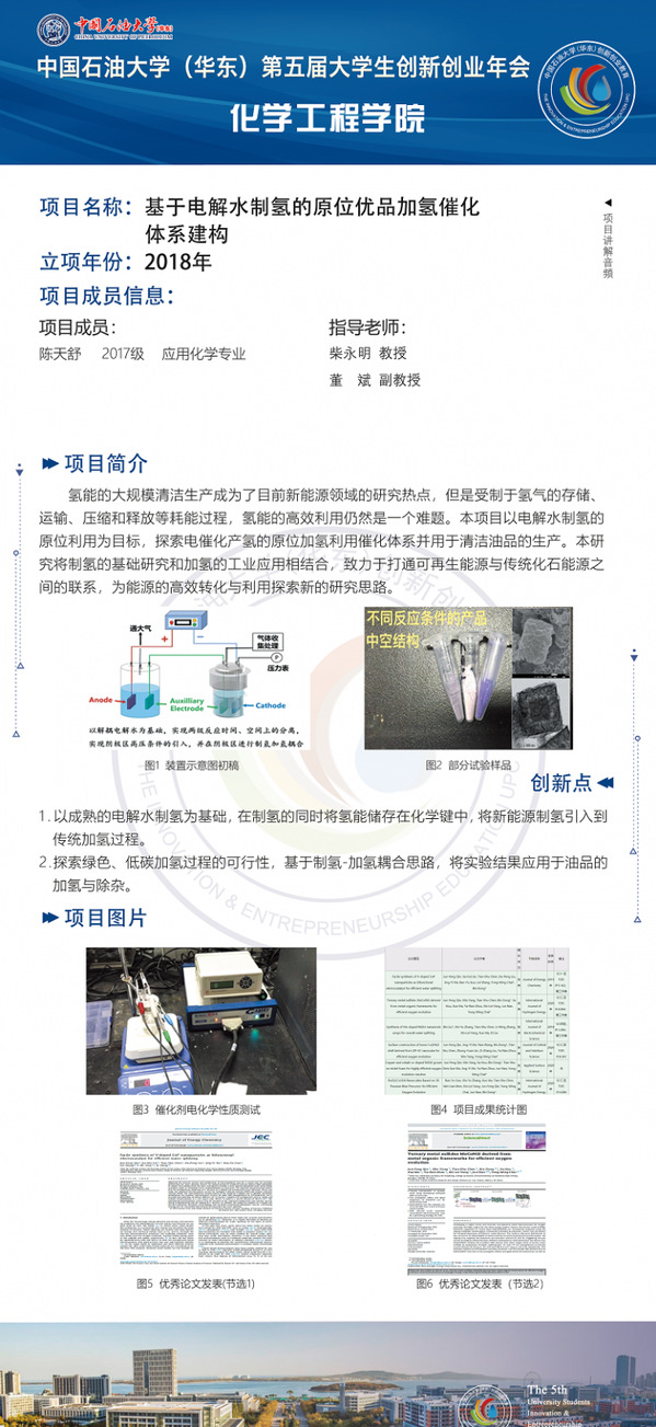 基于电解水制氢的原位优品加氢催化体系建构 展板