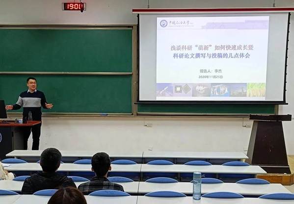 为宣传先进典型,树立学习榜样,引导同学们发扬刻苦钻研的学习精神,掌握正确积极的学习方法,并且努力营造良好的学习氛围,从而达到进一步推动化学工程学院学风建设的目的,本院研究生会于2020年11月25日19点在石大西廊101教室举办了研究生优秀科研项目成果汇报会。本次活动面向化学工程学院全体员工,特邀李杰师兄为同学们就优秀科研项目的课题进展、取得成果、创新经验等方面展开分享和意见指导。
