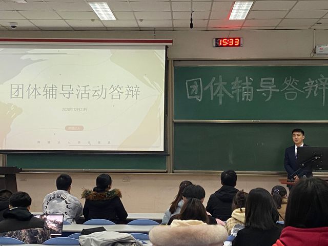 团体辅导活动的举办,是为了提高老员工心理健康水平,帮助员工提高人际交往能力,增强班级凝聚力。此次答辩,使栾琳、李宇航了解了各班心理团体辅导活动的具体情况,同时促进了心委们之间的交流。