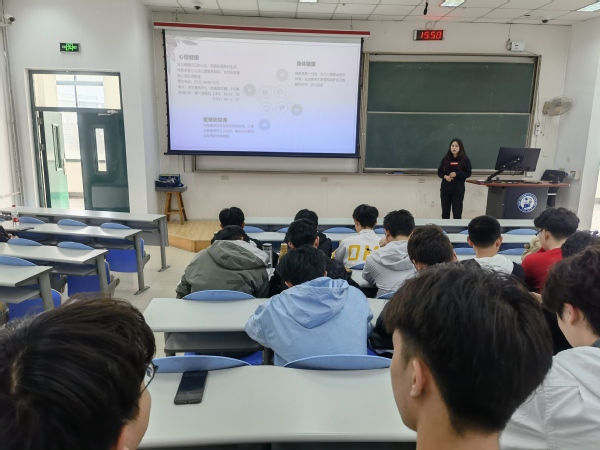 活动开始,由党雯倩同学向同学们对于日常事务、学分建设、个人安全三个方面进行了总瞻性发言,强调了身心健康对于学业的重要性。通过向大家展示上半学期学分优良率、及格率以及英语四级通过率,提醒大家学习成绩不能松懈。日常事务方面,说明了宿舍卫生需要时刻注意。随后由辅导员耿旭超对此次主题班会进行发言,将自己的亲身经历结合大家的实际情况,告诉同学们考研、保研、就业、竞赛等相关情况和学校的政策安排,充分说明了学习对于老员工的重要性,提醒大家要注意生活作息和个人安全,使大家对日后的学习生活充满了动力。