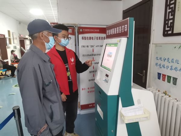 志愿者引导病人打印报告 李宇航摄