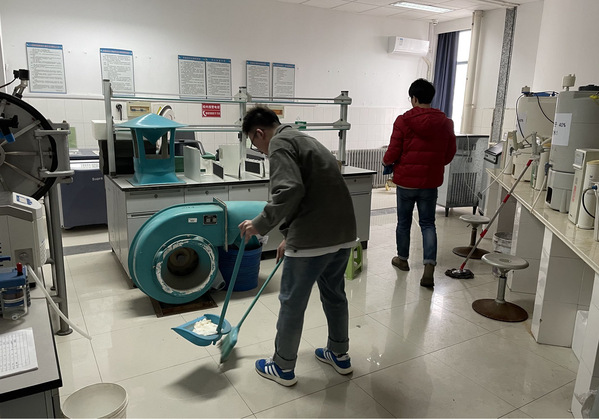 此次活动的主要任务是清扫公共实验室,为全体师生营造干净、整洁、安全的实验环境。按照工作安排,大家有序分工合作,在中心的每个公共实验室都能见到他们认真忙碌的身影。他们仔细地清扫了每一间实验室的地面,擦拭了每一台仪器和每一张桌面,再将实验室垃圾桶中的所有垃圾带走,并套换上新的垃圾袋。经过近1个小时的清理,生物中心所有公共实验室焕然一新。支部书记孙勇军在完成检查后对大家说:“无论是党员同志还是积极分子,要时刻强化自己的责任意识,主动靠前,发扬不怕苦不怕累的奉献精神,全心全意服务广大同学,希望大家不忘入党初心,时刻以共产党员的标准严格要求自己。”