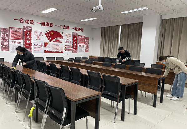 党员、积极分子清扫会议室
