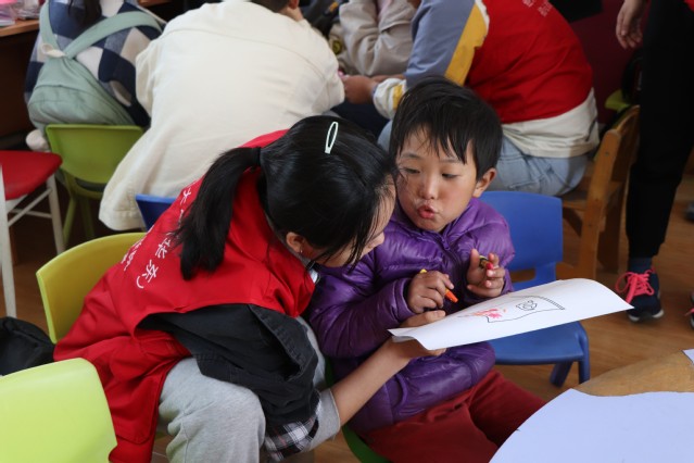 上午八点,两党支部成员携带衣物、书本和玩偶等物资,乘车前往目的地,与富春江路小学、学林教育中心的员工们汇合后,语训中心窦董事长对中心的基本情况及在场孩子们的健康状况进行了基本介绍。两校员工和支部成员为语训中心的孩子们进行才艺表演,过程中,孩子们与支部成员们有说有笑,活动成员还与孩子们互相交换姓名、联系方式,气氛融洽。随后,党支部成员为孩子们送上书籍、玩偶等礼物,并组织开展了吉他弹唱、故事叙讲、绘画授课、体育运动等丰富有趣的交流活动,孩子们被分成多个小组与党支部成员进行有趣的游戏和深入的交流。部分成员还在图书室进行了书本整理和卫生打扫,给孩子们提供舒适而干净的生活环境。