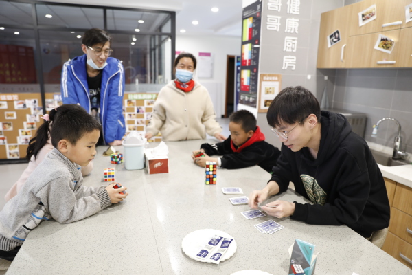 活动伊始,每位志愿者简单的介绍了一下自己,随后便进入课堂。书画室里,志愿者田张裕为来上课的孩子们准备好了纸笔,一边讲解运笔技巧,一边带领他们练习,大家沉醉在书法的独特魅力之中;魔方魔术室里,志愿者刘玮、曾现府教孩子们魔方的复原技巧,带领着孩子们走进千变万化、奥秘无穷的魔方世界;音乐教室里,志愿者施怡霖教孩子们如何发音,唱出歌曲隐形的翅膀,和孩子一起沉浸在音乐的天地。最后,在一片欢声笑语中,志愿者同小朋友们一起度过了充实并且轻松的周末时光,本次的兴趣班活动也得到了小朋友家长们的欢迎和认可。