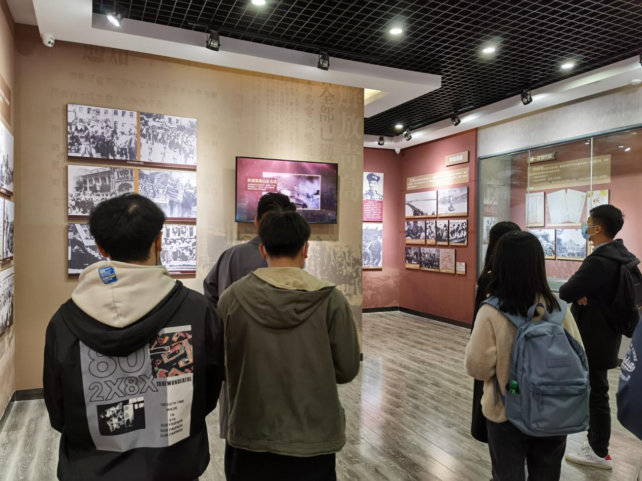 随后,同志们参观了依山而建呈现“品”字型的烈士纪念堂、抗战馆、军魂馆,看了日本非法侵占累计16年的战争罪行相关历史照片、青岛军民顽强抗战的历史资料、不同历史时期涌现出的典型烈士人物等等,李本超同志表示,“学习了这么多的感人事迹,心生敬畏。哪有什么岁月静好,只不过是有人在替你负重前行,这些历史就是最好的教科书,是他们的存在让我们坚定不移的走下去,开创更美好的未来”。在馆内的互动小游戏中,同志们纷纷向革命烈士献花,鞠躬,献上祝福,留下签名,将他们的无私付出牢牢的记在心中。