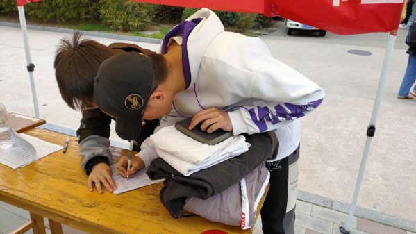 志愿者登记捐赠物品 刘倬君摄影