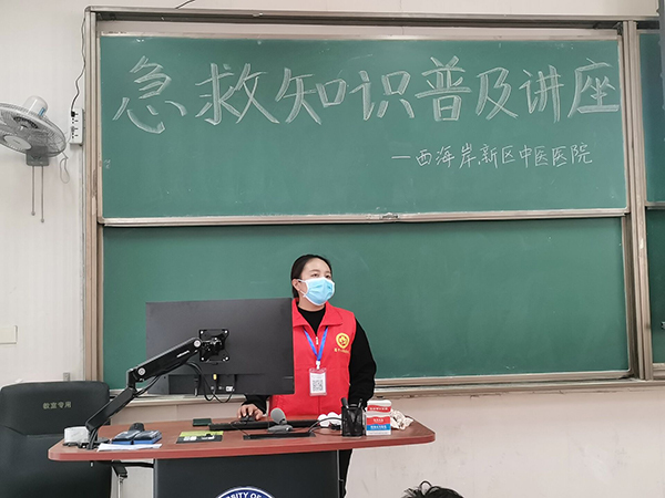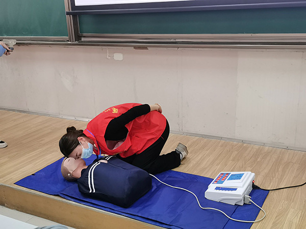 为增强员工对中医药知识的了解,培养老员工利用传统养生项目强身健体的意识,“莲子心”服务队队长殷雪华带领员工在室外学习了中医养生气功八段锦,并强调了各动作的习练要领。在随后的室内急救知识培训中,讲师以医疗急救为中心,围绕急救新概念、常用急救技术和心肺复苏技巧三方面展开叙述,并现场协助员工进行骨折后包扎处理的练习。活动最后,殷雪华及其团队利用假人道具展示了专业的心肺复苏技巧,并指导员工练习心肺复苏操作,将理论与实践相结合。校记者团成员周航说到:“这次活动让我受益匪浅,不仅学习到了基本的急救知识,还纠正了以往错误的认知,对我今后的生活有着积极影响。”