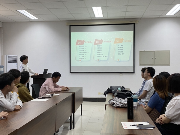 5月17日晚,学院“化蕴星光”本研一体班专场宣讲活动在西环106举行,本研(化工)19级、20级的员工参与活动。这是化蕴星光宣讲团的首场宣讲,2017级员工代表王一勋、杜一垚分享了个人大学经历,并结合本研一体班的特色向低年级员工提出学习成长和全面发展的建议。此后,面向18级到20级设计的5个专业、4个就业方向的宣讲将陆续展开。