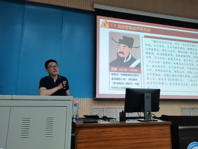 会议伊始,刘伟介绍了本次活动的背景、目的和意义。单珣从沈括的《梦溪笔谈》讲起,介绍了我国石油行业的发展历史。以延长石油为着眼点,以时间为脉络,以典型人物事迹为线索,讲述了中国从被带上“无石油”的帽子,到现如今石油行业蓬勃发展位居世界前列的历史过程中,严爽、高登榜、陈振夏等人埋头苦干,为中国各阶段的发展提供石油需求作出了重大贡献。单珣讲道:“延长石油曾为中国革命和经济建设作出过重要贡献,希望同学们能够弄懂并破解其中的‘红色密码’,汲取精神动力,走好新时代我们青年人自己的长征路。”王宁结合自身经历,从齐鲁大地的由来、风土人情、革命历史等方面娓娓道来,讲述了沂蒙六嫂为代表的一个个感人故事,分享了孟良崮战役、济南战役等经典战役,彰显了源远流长的齐鲁文明和革命时期山东及山东人民的担当。王宁谈道:“山东作为一个底蕴深厚、潜力无穷的宝地,一定能够在继承发扬优良传统、不忘初心攻坚克难的道路上走得越来越远。”现场同学们认真听讲,积极互动,气氛热烈。