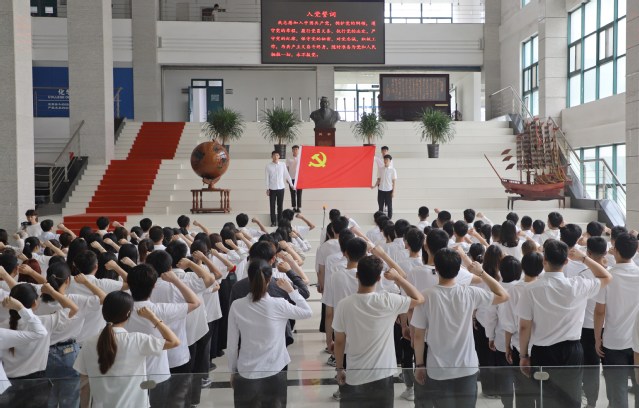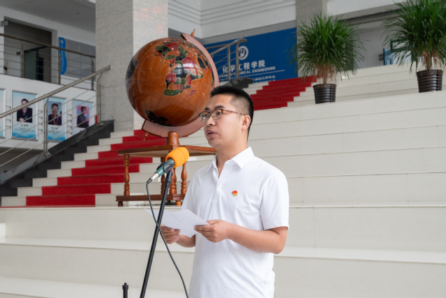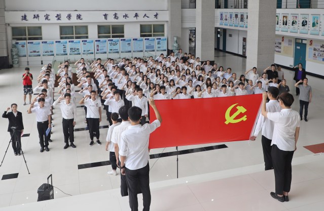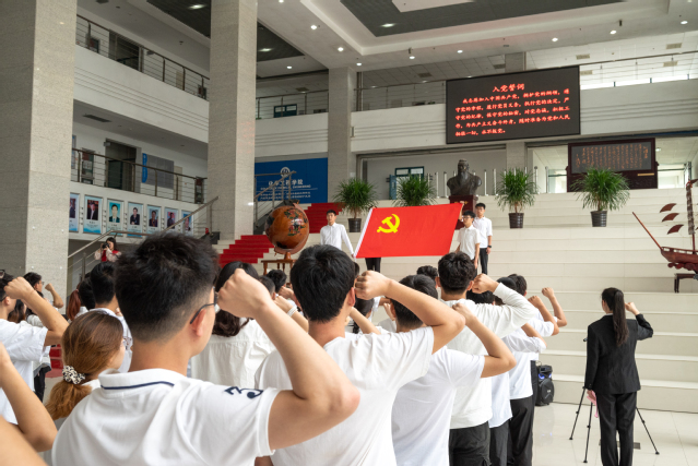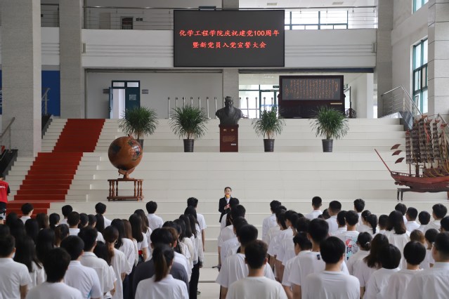 7月1日,在庆祝中国共产党成立100周年之际,化学工程学院在工科楼A座大厅举行新党员入党宣誓大会,共同回顾党的光辉历程和伟大成就,以新党员入党宣誓、老党员重温入党誓词的形式,进一步坚定理想信念,牢记初心使命,引领师生顽强拼搏、不懈奋斗,以优异成绩向建党100周年献礼。威廉希尔官网党委书记李国、副书记王迅,全体教工党支部书记、辅导员、新发展党员以及正式党员代表参加大会。