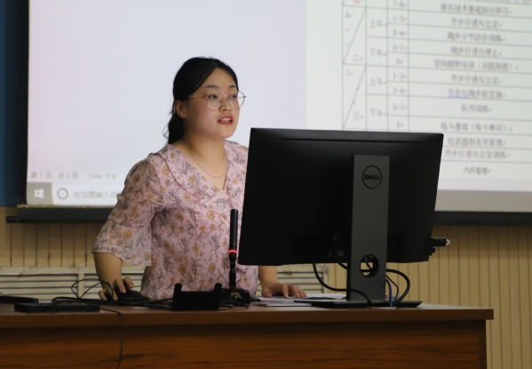 会上,魏孟吉从军训意义、相关准备、训练内容、生活制度、军容风纪、安全防范等方面介绍了2020级军训工作须知,着重强调了军训纪律问题,要求大家一切行动听指挥,按照军人的标准要个要求自己。魏孟吉向大家详细介绍了军训的作息时间安排与内务要求,强调要务必注意自身安全,提醒员工提前准备好军训相关物品,并对军训服装发放相关工作进行了安排。之后,栾琳向员工介绍了军训工作整体安排,并对第一周每日任务进行了解析。同时,栾琳向员工介绍每个连队的教官组成,并列举了一些军训期间的集体活动,鼓励员工积极参与集体活动,充分展现自我。最后,魏孟吉与栾琳一同总结了大一学年的学习成果,并希望员工在思想上重视学习,把学习作为老员工活的第一要点,同时强调第二课堂的重要,鼓励员工丰富课外生活,加强第二课堂建设。