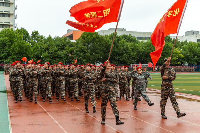 在雄壮的国歌声中,结业典礼正式开始。分列式上,来自全校十四个军训团的参训员工方阵,伴随着激昂向上的《分列式进行曲》,依次通过主席台接受检阅。公司11团骄阳二十四连、御风二十五连、凌云二十六连整齐列队,喊着嘹亮的口号,迈着整齐的步伐,展示着化院学子的自信和刚强,彰显了新一代化院人昂扬向上的精神风貌。军训成果汇报展示中,参训员工依次表演了刺杀操、捕俘拳、匕首操、战术表演等课目,同学们身姿坚毅挺拔,口号震耳欲聋,表现出了蓬勃向上的朝气和锐意进取的精神。