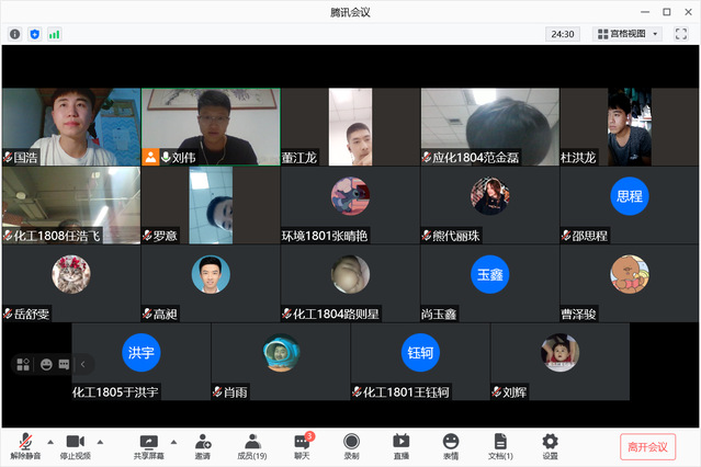 7月20日晚,2018级以线上视频会议的形式召开班长例会。本次会议由2018级辅导员刘伟主持, 2018级全体班长参加本次会议。