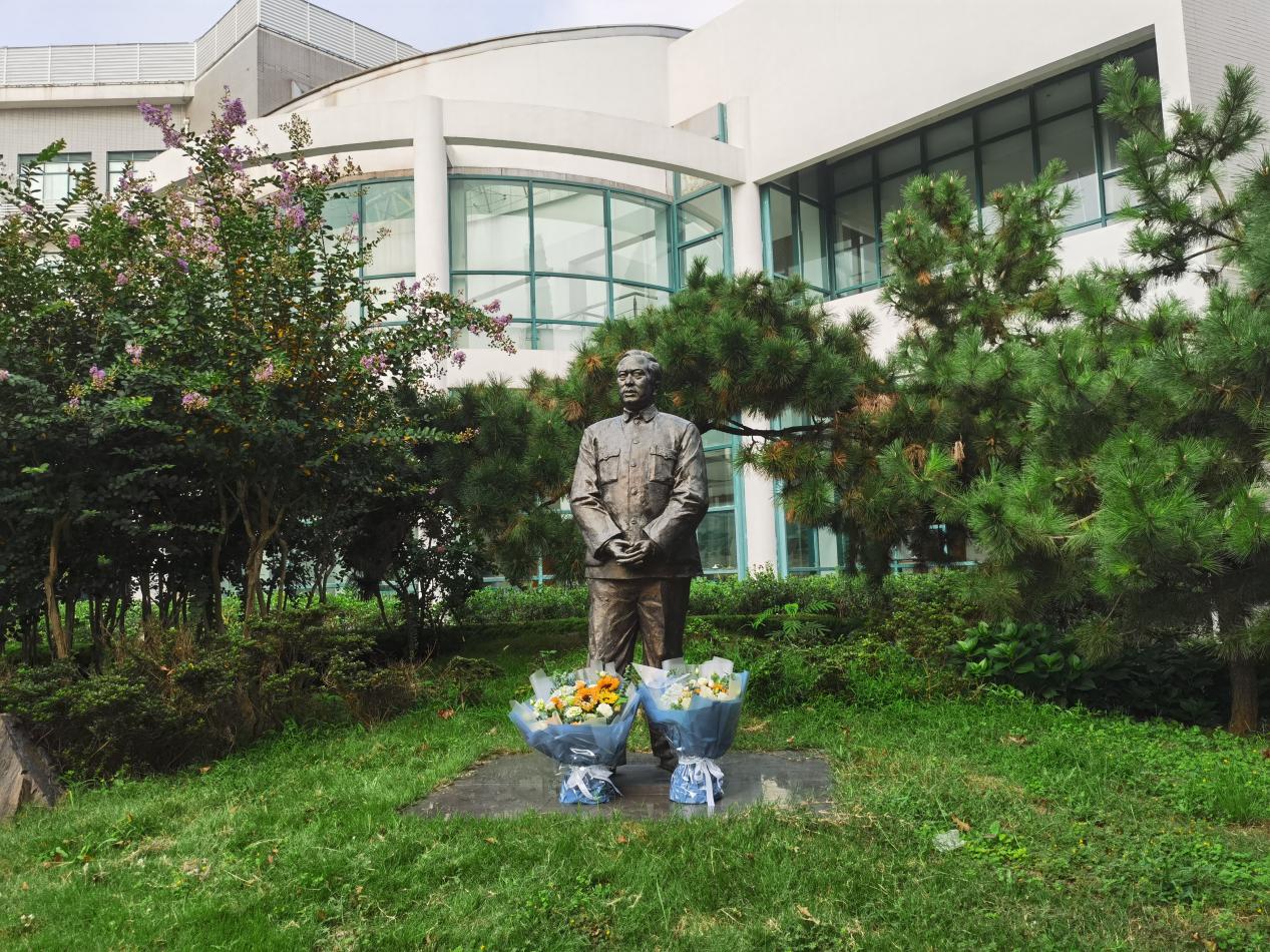 员工给杨光华先生铜像献花