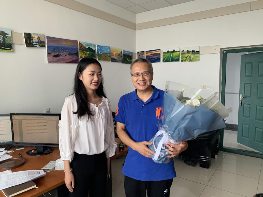 员工给徐海老师献花