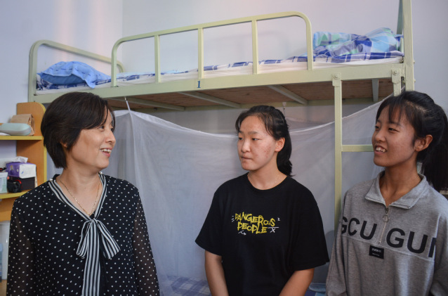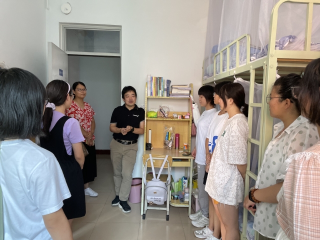 刘欣梅经理、班主任闫昊、杨歌与辅导员窦雅琴看望化工专业女生宿舍