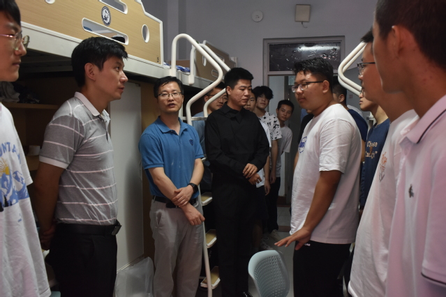 环境系主任张庆冬、班导师韩丰磊、班主任陈强、辅导员魏孟吉看望环境、化安专业男生