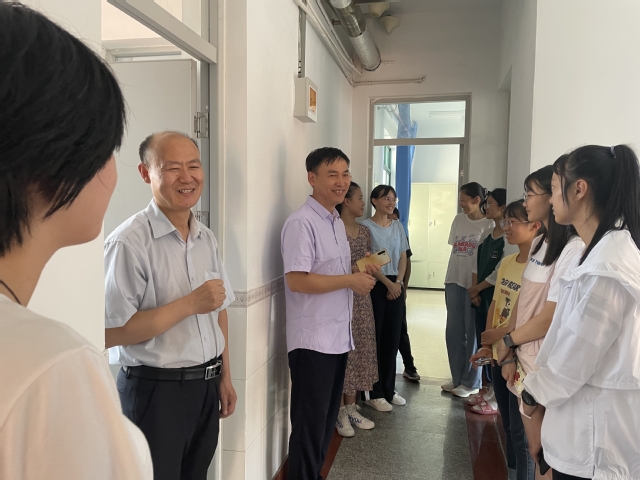 在与新生面对面的交流中,老师们介绍了学院和专业的相关情况,询问了新生们的入学感受,并为同学们解答各类问题。老师们鼓励同学们要尽快适应老员工活,积极参与各项活动,追求卓越,全面发展。刘欣梅教授走访了化学工程与工艺专业的女生宿舍,她对同学们加入化学工程学院大家庭表示热烈欢迎,详细询问了同学们从哪里来、是否适应环境、生活中有哪些困难等情况,并介绍了学科专业特色水平及未来就业相关情况。她希望同学们重视专业学习,积极参与社团活动,培养爱好特长,谋求全面发展,同时也承诺,遇到无法解决的困难及时向老师们求助,学院是大家坚强的后盾。张永宁书记带队探望了应用化学专业男生,他对同学们的到来表示欢迎,询问了新生的家乡及对学校的印象等,强调要注意加强学习,尽快适应学校生活,做好大学规划,加强身体锻炼,务必注意各方面安全。学院老师深入员工宿舍看望新生,使刚踏入大学校门的新生感受到了家的温暖,大家积极分享自己的入学感受,并对老师们的关心表示感谢。