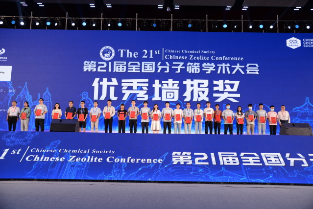 为奖励我国分子筛领域科学工作者的学术成就和突出贡献,促进我国分子筛学科的发展,中国化学会分子筛专业委员会于2017年设立“中国分子筛奖”,下设“中国分子筛终身成就奖”、“中国分子筛成就奖”、“中国分子筛青年奖”和“中国分子筛新秀奖”。在本届会议上举行了第三届“中国分子筛奖”奖颁奖典礼,浙江大学肖丰收教授获成就奖,复旦大学邓勇辉教授和中国石化上海石油化工研究院王传明研究员获青年奖,清华大学陈晓、太原理工大学李立博、苏州大学孙启明和中科院大连化物所武新强获新秀奖。同时,为了激励青年教师和莘莘学子,本届大会评选出了15个优秀口头报告奖和22个优秀墙报奖。