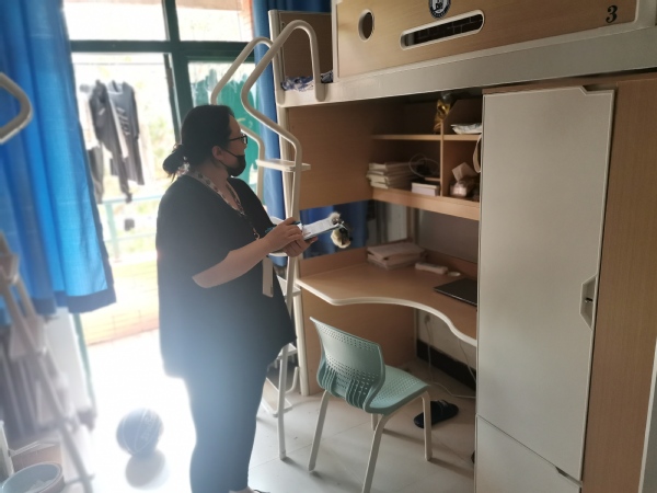 为引导广老员工培养良好的生活卫生习惯,提高安全防范意识,最大限度降低宿舍隐患,9月30日上午,辅导员窦雅琴、李宇航对2021级本科生宿舍开展了安全、卫生专项检查。