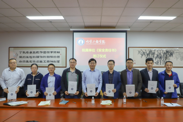 10月14日,学院同院属各单位主任、党支部书记签订了《化学工程学院系(室、中心)安全责任书》。同时,要求各单位尽快落实与实验室负责人签订安全责任书的工作。